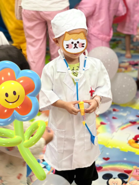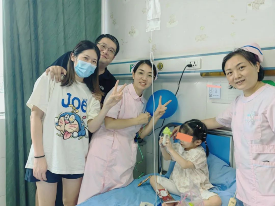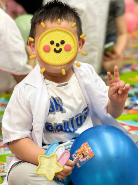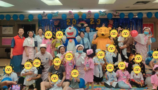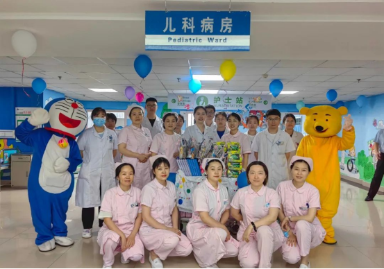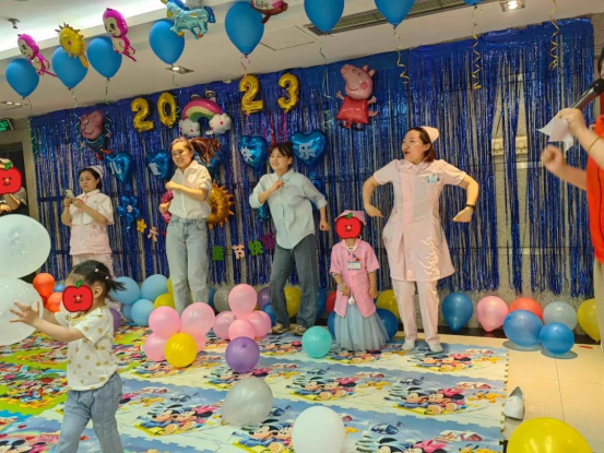 一大早,儿科病房彩球高挂,精心组合的气球花和各式的贴纸图案绽放在护士站、走廊上、活动室里,更是绽放在了孩子们的心里,处处洋溢着喜庆的节日气氛。