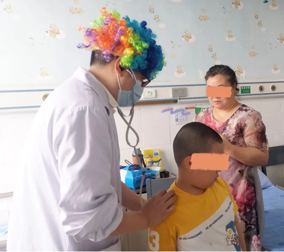 活动现场在医护人员的布置下,漂亮的彩带和五颜六色的气球,装点映衬出孩子们的天真与活力。欢快的舞蹈开始了今天的“六一”儿童节日,在活动过程中,许多患儿从最初的不安和紧张,到最后的欢声笑语和放松心情,孩子们时而认真的听着故事,时而又欢快的做起“小医生”游戏。在孩子们眼中,医护人员已经不再是一个个冰冷的“白大褂”,而是能治好他们病痛还能逗他们开心的阿姨们。 在病房里,“小丑医生”们仔仔细细的为孩子们检查身体,为了能让被病痛折磨的孩子脸上多一丝笑容让其多感受到一点温暖,“小丑医生”们也是使出了浑身解数。最后儿科医护人员纷纷为孩子们送上最美好的祝福并精心准备了礼物。