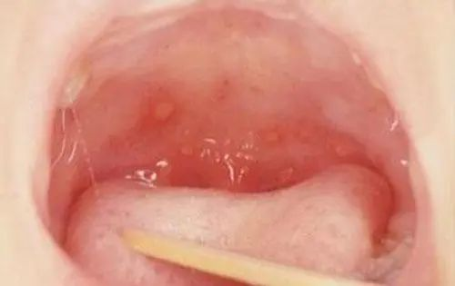 除高热外,上颚黏膜出现水泡。