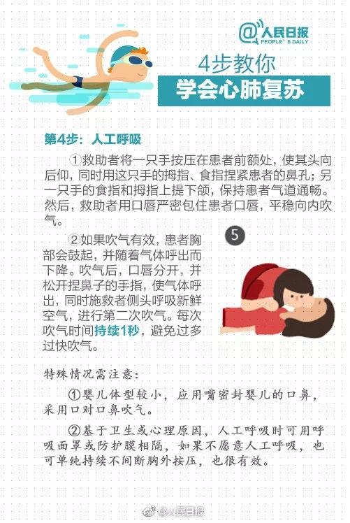 如何急救 1、青少年在发现有人溺水时,不能贸然救助,防止在救助他人时自己溺水身亡。应向四周大声呼救,请周围的成年人救助溺水者;现场可用投木板、救生圈、长杆、绳子、塑料袋、书包等方式,让落水者攀扶,增加救援时间。 2、应迅速清除溺水者口腔、鼻腔内脏物,使其保持呼吸通畅,以便实施心脏复苏即胸外按压急救。 3、如果出现以下情况,禁止胸外按压,需拨打120等待救援:胸廓畸形或心包填塞、胸壁开放性损伤、肋骨骨折。