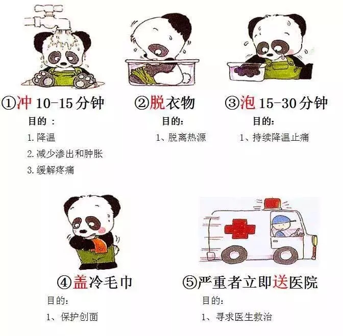 小儿烫伤、烧伤应急处理办法时间:2020-08-30 浏览量:586 来源: 作者:烫伤、烧伤在婴幼儿中比较常见,并且后果可能非常严重,但并非每个家长都知道如何紧急处理,儿童被烫伤一旦处理不当,就可能让伤情延误甚至加剧,家长们一定要做好预防工作。 不是只有明火才能导致孩子损伤,像装有茶水的杯子,家里开了好久的灯,广场上的地灯,热的洗澡水,长时间使用的热水袋、暖儿童等都可能造成孩子烫伤,家长们一定要注意哦!