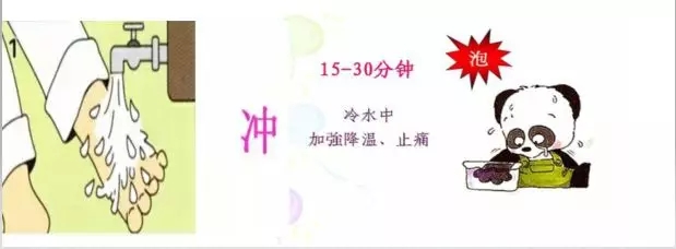 ●冲泡:儿童被烫伤后,家长自己不能慌张,要第一时间对着烫伤的部位冲冷水,这样一来可以降温,二来可以收缩血管,以减少烫伤处的疼痛和损伤。(但不能低于5℃,不要使用冰块,因为其会导致疼痛加重或低体温甚至休克)将患处泡在冷水中,直到没有疼痛或者疼痛明显减轻为止,冲泡时间上至少15分钟(国内也有推荐冲泡至少30分钟的)如果烫伤处已经起泡并破了,那就不能浸泡,以防感染。(冷水浸泡时间越早效果越好)