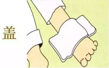 ●盖:等孩子不那么痛了,尽量使用干净的,不掉毛的纱布松松的盖在伤处,防止污染。