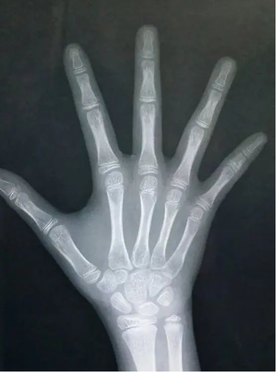不同阶段的骨头具有不同的形态特点。通常利用左手手腕部X线摄片,根据腕骨、掌骨、指骨骨化中心数量、大小、形态、以及结构相互关系来确定骨龄。