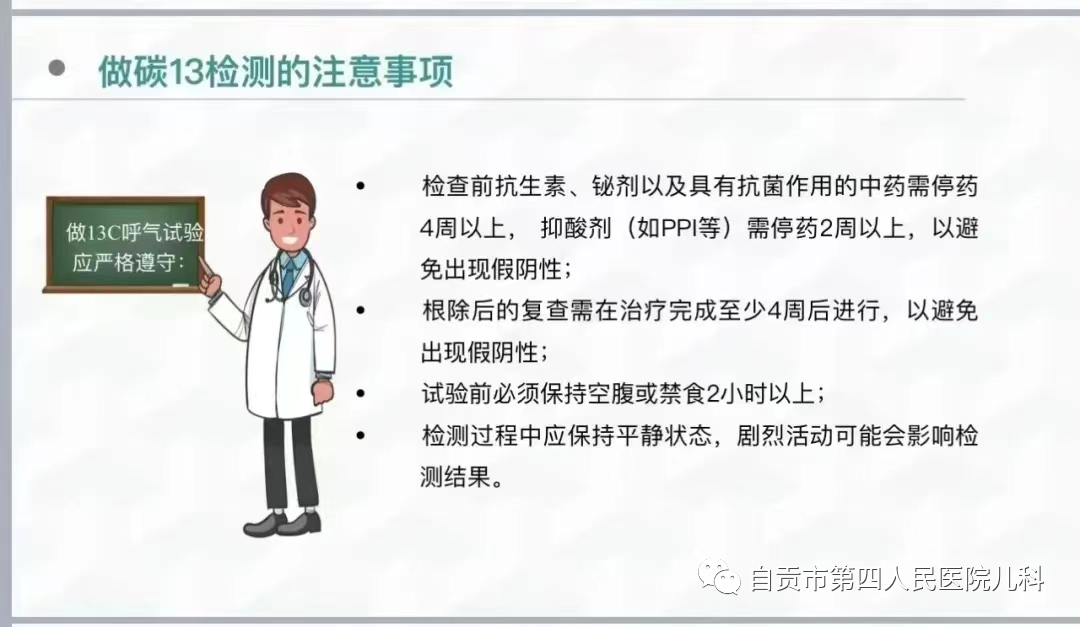 八、预约检查流程 1.挂号室或网上预约挂号→门诊医生开检查单→缴费→至儿童肺功能室进行登记预约; 2.预约咨询电话:8202902或8111931; 3.检查地点:小儿肺功能室内。 4.注意:成人也可于我科进行预约检查。 怎么知道幽门螺旋杆菌有没有治疗好呢? 一般需要在停药后4-8周再吹一次气, 做一次检查就可以了。 但也不是根除之后就可以高枕无忧, 不注意又会卷土重来哦。