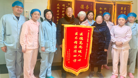 家长点赞送锦旗,表达谢意 2月16日,是个可喜可贺的日子,孩子出院了,准备回到爸爸妈妈身边了!为表达心中的感激之情,孩子父母和奶奶特地送来一面印着“医德高尚暖人心,医术精湛传四方”的锦旗。“感谢你们救了我孩子的生命,你们真了不起,不愧是救死扶伤的白衣天使。”握着医务人员的手,孩子家长激动地说。重度窒息合并胎粪吸入性肺炎,属于新生儿疾病中救治难度高,死亡风险极大的危重病例。孩子的成功救治,不仅体现了医护人员的治疗技术和护理水平,也体现了医务人员的责任心和爱心,同时与家长的坚持和高度信任分不开。这也是一例良好医患配合的典型范例,为了孩子,四院儿科人永远和家属齐心协力,护佑健康!