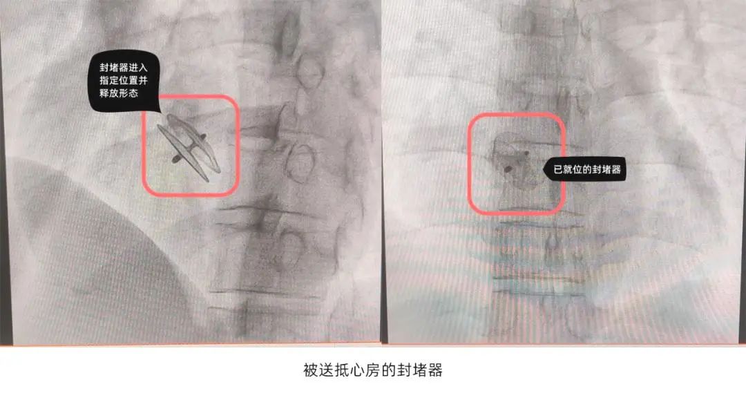 其原理是将一根导管通过大腿根部的股静脉送入右心房,穿过未闭卵圆孔至左心房,释放专用封堵器,进而关闭卵圆孔,从而达到根治的目的。