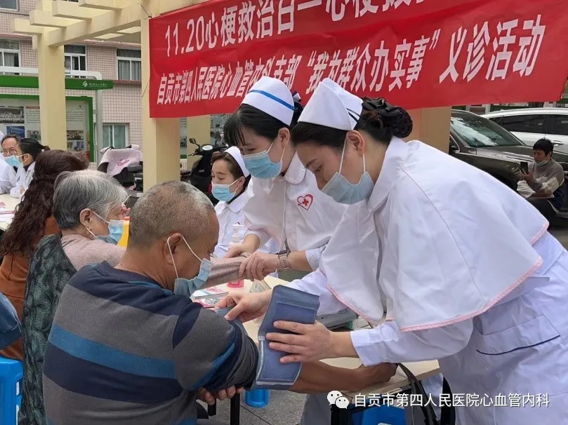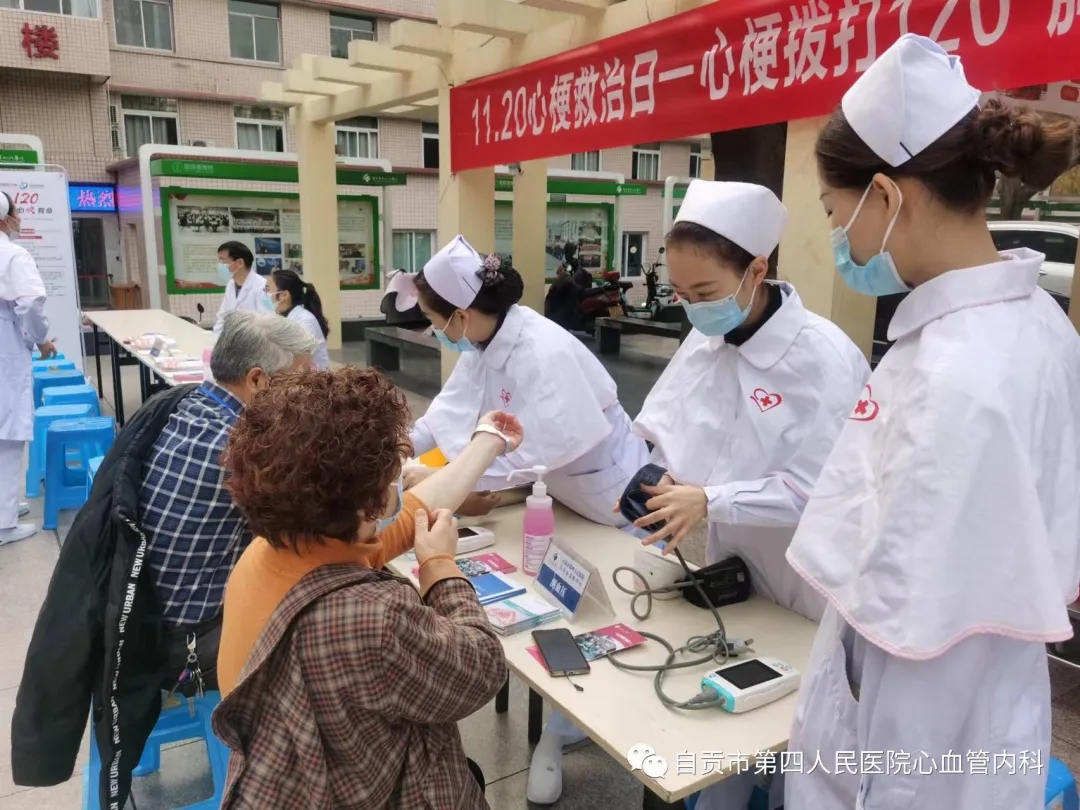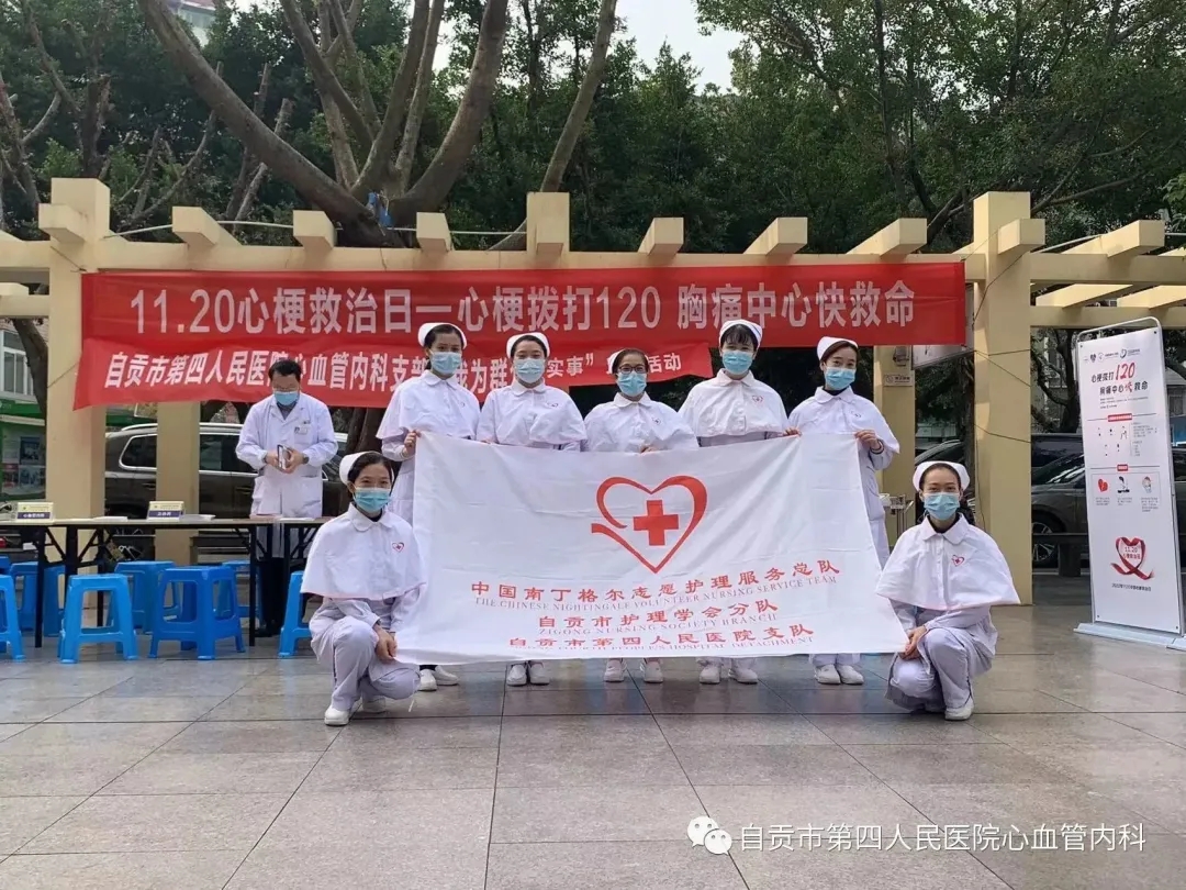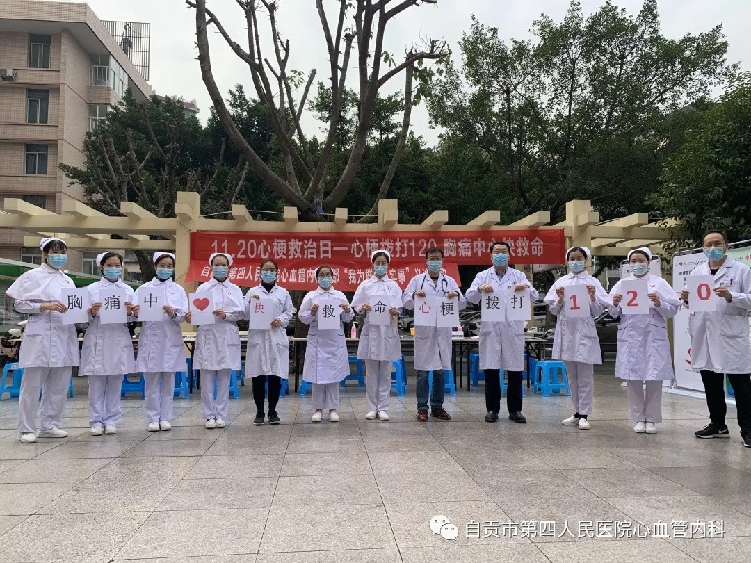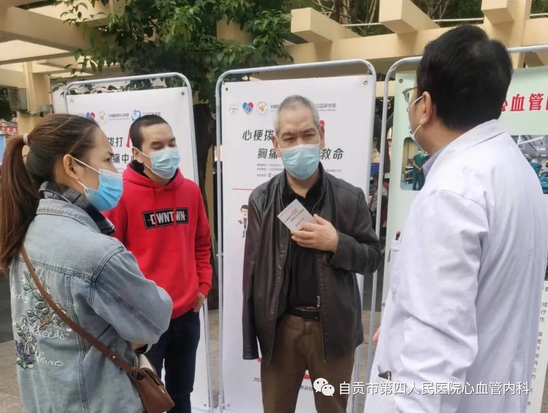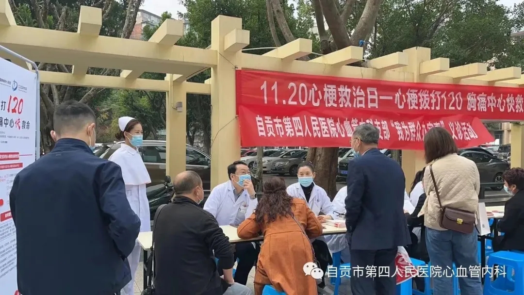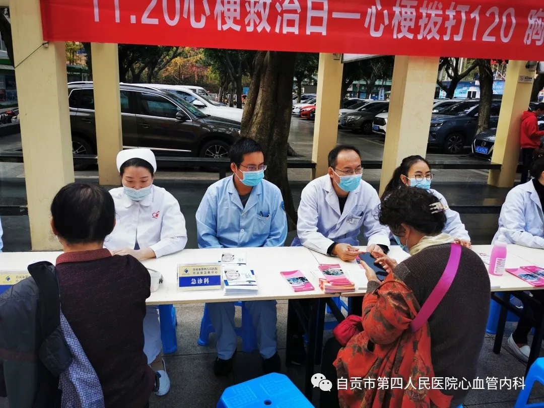 为深入开展党的群众路线教育实践活动,建设人民满意的医疗服务体系,提高人民群众的健康水平,自贡市护理学会分队自贡市第四人民医院支队心血管内科于2022年11月20日上午在自贡市第四人民医院檀木林院区大坝开展“心梗拨打120,胸痛中心快救命”义诊活动。