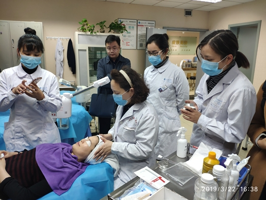 根据四川省皮肤病与性病医疗质量控制中心和自贡市卫健委质控办要求,为贯彻落实 2019 年自贡市医疗质量控制工作会会议精神,进一步提高我市皮肤病与性病专业相关医务人员的诊疗水平,自贡市皮肤病与性病医疗质量控制中心于 2019 年 3 月 22 日下午在自贡市第四人民医院汇东医院举办了本专业适宜技术推广培训,邀请四川大学华西医院皮肤科专家就《果酸在皮肤科的临床应用》作精彩的学术专题讲座,并进行了现场示范操作,广大参会人员收获颇丰。此次培训对我市皮肤科专业技术的发展起到了积极推动作用。