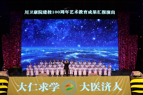 11月16日晚,以“大美川康,百年启新”为主题的四川卫生康复职业学院建校100周年校庆文艺晚会在室外运动场举行。