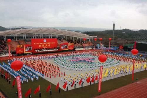 “弘扬百年仁济精神,创建一流高职院校。”2018年11月17日上午9时,四川卫生康复职业学院建校100周年庆祝大会在运动场召开。省市各级领导、国内外嘉宾、社会各界人士、返校校友和在校师生7000余人共同庆祝学校建校100周年华诞。