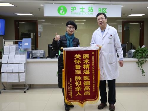 11月29日一早,患者家属朱女士找到自贡市第四人民医院党委办公室,她说要当面感谢医院心血管内科汤勇、呼吸内科刘萍,要亲自将锦旗送到他们手中,是他们让自己的父母有了康健的身体。