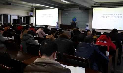 12月6日下午,自贡市第四人民医院在医院多功能厅召开了创文迎检工作推进会,分析研判全市创文工作形势任务,聚焦突出问题和工作短板,进一步统一思想、落实责任、强化举措,确保按期高质量实现创文目标。党委副书记龚祥忠对创文工作进行了再部署、再强调,从再重视,尽职尽责,再对标,查漏补缺,再聚焦,强化监督,再巩固,增光添彩四个方面提出要求,要求各科室主动作为,继续努力,确保打赢创文迎检攻坚战。
