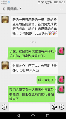 看到家属及患者强烈的康复意愿,她的主管医生告诉其之前也有类似患者进行康复治疗后还能站立起来行走的例子,所以建议最好转康复医学科进行康复治疗,杨女士及家人商量后接受了医生的建议。