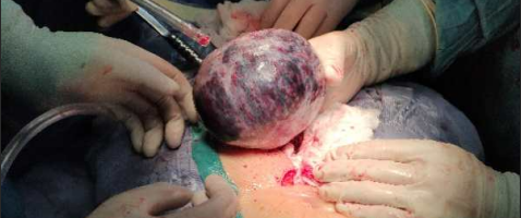 术中发现张奶奶下腹腔一巨大类圆形肿瘤,整个左侧卵巢表面呈紫黑色坏死样改变,左侧输卵管明显淤血坏死,医务人员为她做了切除。