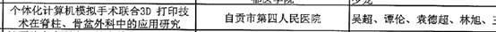 近日,2018年度四川省医学科技奖公布,市四医院脊柱与创伤外科和数字医学中心联合的科研项目“个体化计算机模拟手术联合3D打印技术在脊柱、骨盆外科中的应用研究”,获得四川省医学科技二等奖,成为全省地市级医院的代表。