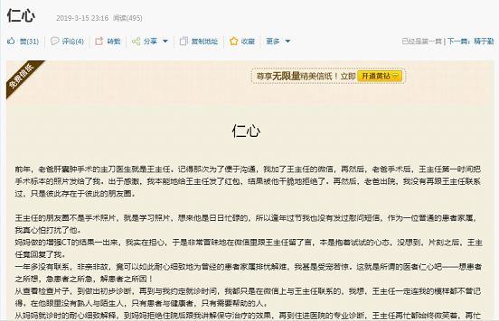 这是患者家属陈女士(化名)在自己QQ空间日志上发布了家人就医的心路历程,其中她特别提到肝胆外科副主任王学文,她文中写到王学文具备医者之心,真正做到了想患者之所想,急患者之所急,解患者之所困......