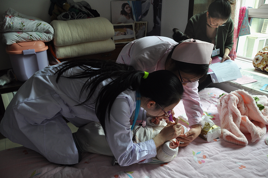 王显敏无论再忙碌,每周总会抽出时间为辖区的新生儿入户义诊。