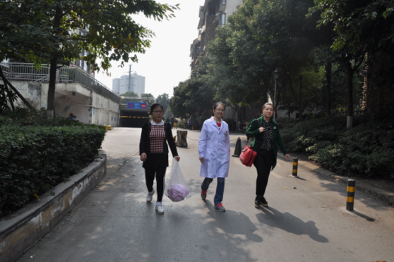 每一次入户义诊,往往要走访好几户人家,很多住户都是老小区,基本都靠走路,一走就是一下午。