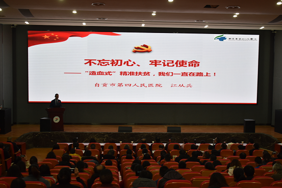 12月12日,在市卫健委举办的“不忘初心、牢记使命”做新时代合格党支部书记培训班暨“初心故事汇”宣讲活动上,自贡市第四人民医院急诊科副主任江从兵以《不忘初心、牢记使命“造血式”精准扶贫,我们一直在路上!》为题,向与会人员做了“精准援彝”专题讲述。