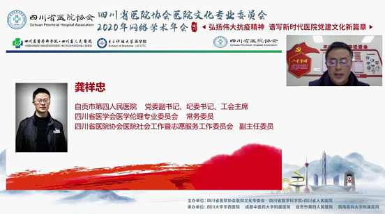 本次年会由省医院协会医院文化专委会和省人民医院共同主办,四川大学华西医院等4家副主任委员单位共同承办。会上,省人民医院党委书记欧力生等5名同志围绕党建、文化建设和抗疫工作进行了经验分享和交流。我院党委副书记龚祥忠在题为《以高质量党建保障医院高质量发展》的交流发言中提到,近年来,院党委以“党建领航、医改导向、创新驱动、文化浸润”为总纲,以“支部建在科室、责任扛在肩上、患者放在心中、光亮闪在岗位”为主题,扎实开展党的建设各项工作,院党委在关键时刻唱主角、在重要工作中扛主责、在平常时候抓主业,发挥了“把方向、管大局、作决策、保落实”的作用,保障了医院高质量发展,提升了群众就医获得感、安全感。