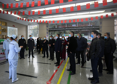唐勇一行考察了急诊科,参观了胸痛中心、卒中中心、抢救室等急救单元,党委书记刘建辉向来宾介绍了医院急诊急救体系建设情况,急诊科护士长陈瑶就急诊科建设作了专题汇报。
