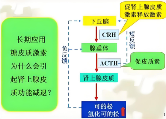 简单来说,当外来激素过多时,人体的肾上腺“懒惰”了——不再自己分泌足够的皮质醇。久而久之,当患者突然停药时,体内皮质醇水平骤降,无法满足日常生理需求,导致一系列严重的症状。这种情况下,如果患者正好遭遇急性应激(如感染或手术),就可能发生危险的“肾上腺危象”。
