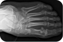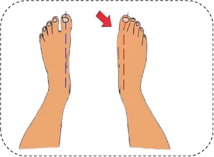 画线法:上下观中足与足趾连线,直线正常,内弯属扁平足。