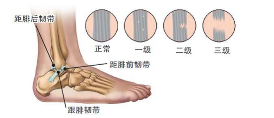 一般情况下,按照损伤的程度进行分类,可以将踝关节扭伤分为: