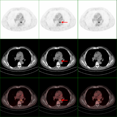 近期,李女士在体检时发现,其肺部存在一个直径约1.1厘米的压实性结节影,并且该结节形态欠规则,边缘模糊。当地医院临床医生高度认为该结节为恶性肿瘤。吓坏了的李女士为得到准确诊断,来到了市四医院核医学科进行了PET/CT检查。对照PET/CT图像,医务人员仔细辨别后,认为其为炎性病变。后经病理检查,证实了医务人员的判断。看到恶性肿瘤被排除的检查结果,压在李女士心头的大石头总算落了地。