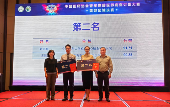 近日,在中国医师协会举办的“无痛有我 舒适同行”青年麻醉医师病例讨论大赛西部区域决赛中,市四医院麻醉科古钰医师凭借卓越的演讲才能与深刻的病例剖析,荣获比赛第二名。
