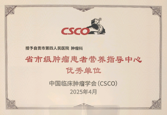 4月26日,2025CSCO肿瘤支持治疗大会&CSCO肿瘤营养与综合治疗年会在浙江杭州举行。会上,对第六批全国肿瘤患者营养指导医院/中心(Guide Patients to Support Care, GPS)进行表彰,自贡市第四人民医院肿瘤科获评“省市级肿瘤患者营养指导中心优秀单位”。