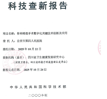 近日,市四医院骨科中心团队在吴超主任带领下,成功实施的“个性化3D打印钛金属跖骨假体植入术”荣获重大权威认证。四川省卫生健康发展研究中心出具的《科技查新报告》明确指出,在国内外公开发表的文献中,未见使用3D打印金属材料制作第一跖骨与楔骨假体并进行植入手术的报道,未见使用计算机数控(CNC)加工聚乙烯籽骨衬垫并应用于下肢负重骨。这份官方报告为本次手术的全球首创性提供了无可争议的佐证,夯实了其里程碑式的地位。三年随访记录该病例从设计、手术到康复全过程,相关的临床研究成果也已正式发表于国际知名SCI期刊《scientific reports》。这标志着该创新术式从临床实践到学术认证均获得了国内外同行的双重认可,是我国在骨关节精准重建领域的一项标志性成果。