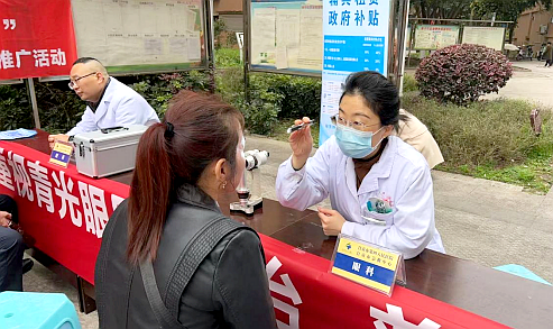 活动现场,医护人员为居民提供眼压测量、眼底筛查、视力检测等服务,并开展青光眼防治知识科普,帮助高危人群提高早筛早治意识。