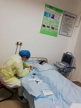 科室谢红护师在为魏阿姨做picc置管术时,导管无法顺利送入深静脉管腔内,她意识到此次置管术难度非常大,立即上报科室护士长张丽,同时通知科室王雪莲、陈佳护师紧急赶往置管室从旁协助。