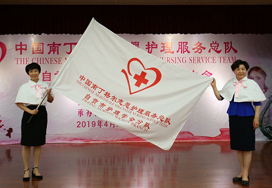 随后,张利岩理事长亲自授队旗予自贡市护理学会会长自贡市护理学会分队队长廖学琴。