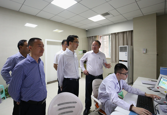 唐强一行先后深入到医院健康管理中心、数字医学中心、放射科、急诊支部基层党建示范点、120指挥中心、高压氧治疗室等地,实地了解了医院的发展建设、救治、服务能力和党风廉政建设情况。刘建辉就医院人力资源建设、设备配置、学科建设、服务规模、党风廉政建设等工作作了详细介绍。
