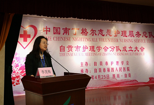 中国南丁格尔志愿护理服务总队理事长、第43届南丁格尔奖章获得者张利岩宣读总队批复,并做重要讲话。她表示,中国南丁格尔志愿护理服务总队收悉四川省自贡市护理学会加入总队的申请,鉴于这支队伍已经开展了多项而系统的志愿服务,并且收到很好的成效,根据《中国南丁格尔志愿护理服务总队章程》的有关规定,经总队理事会审核,同意成立“中国南丁格尔志愿护理服务总队四川省自贡市护理学会分队”,为总队的第343支分队。因为有共同的志愿情怀,因为崇尚南丁格尔精神,因为力践红十字行为,大家才能一起见证四川省自贡市护理学会分队的成立,这是中国南丁格尔志愿护理服务总队的新收获、新拓展,是对护理专业价值的又一次传播。