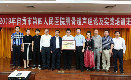 5月5日下午,自贡市第四人民医院肌骨超声理论及实践班在汇东医院学术交流中心开班。中国超声医学工程学会向自贡市第四人民医院授予“肌肉骨骼超声医学培训基地”牌匾,标志着国家级肌骨超声培训基地落户自贡。