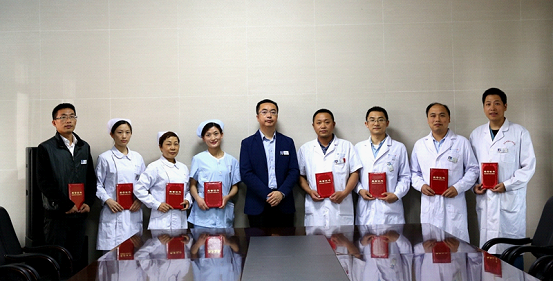 5月7日,市四医院对获得2019年1季度服务之星的张才东、王君、汪健等10名同志进行了表彰,院党委副书记、副院长邱桂刚向服务之星颁发了证书。