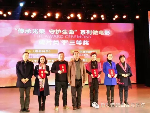 昨(1月12日)下午,四川省卫生计生委“传承光荣、守护生命”微电影展映暨“健康相伴、幸福同行”文艺节目展演在成都隆重举行。由自贡市第四人民医院团委制作的微电影《生命的颜色》获得成片类三等奖,成为现场4部展映作品之一。