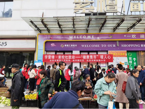 在第63个学雷锋纪念日到来之际,3月5日,自贡市第四人民医院联合新华路社区、自贡市解放路中学在紫檀国际广场举办"健康集市"义诊活动,将暖心服务送到群众家门口。
