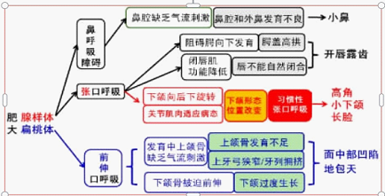 第二,儿童阻塞性睡眠呼吸暂停综合症(OSAHS)及伴发的认知障碍及行为问题。腺样体/扁桃体肥大是儿童OSAHS最常见的病因。儿童OSAHS从呼吸和睡眠两方面影响儿童的身心健康:OSAHS 患儿睡眠时部分或完全性上气道阻塞导致血氧饱和度下降,血液碳酸含量过高,不仅导致儿童认知障碍、白天过度嗜睡、注意力不集中,更有情绪不稳定、抑郁症风险增高倾向,对体格发育、免疫系统和行为认知等均有不良影响,对其今后的日常生活、工作和成人后社会适应能力有长远不良的后果,严重者引起心肺并发症甚至死亡。 问题三:腺样体面容有些啥子表现? 腺样体面容表现为小鼻、唇外翻、开唇露齿,唇肌松弛,牙列不齐,上切牙突出,腭盖高拱、上下牙弓不匹配,长脸,小下颌,地包天。具有腺样体面容的患儿,面部常常呈现为缺乏表情的淡漠状态,故“腺样体面容”而又被称为“痴呆面容”。